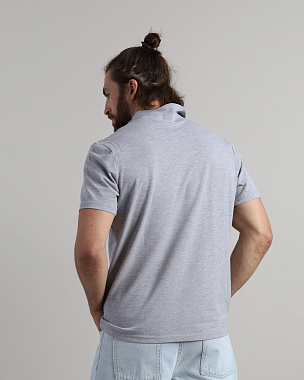 Рубашка-поло мужская прямого силуэта с коротким рукавом. Вязаный воротник, застежка на брендированные пуговицы. Декорирована жаккардовой нашивкой внизу полочки.