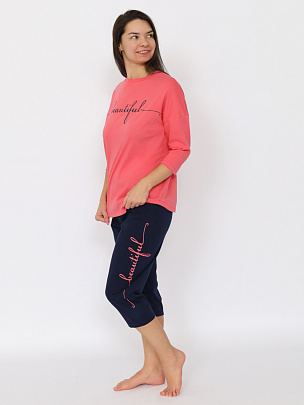 Пижама женская (джемпер, бриджи) коралловая