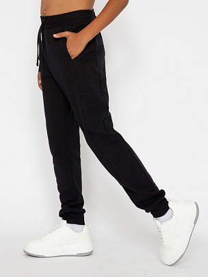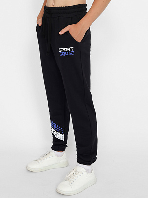 Брюки для мальчика с накладными карманами с клапаном. Нижние срезы брюк оформлены притачными манжетами из полотна с эластаном. Пояс притачной, с резинкой и функциональным шнуром. На карман настрочена декоративная жаккардовая этикетка.