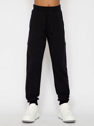 Брюки с притачным поясом и манжетами. В пояс вставлена резинка и функциональный шнур. Пояс и манжеты выполнены из полотна с эластаном. Брюки с отрезной боковой частью, верхняя вставка декорирована отделочными строчками, в подрезах расположен карман.
