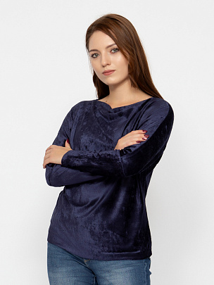 Эффектный джемпер из качественного эластичного велюра, с цельнокроенными рукавами и воротником лодочкой. Джемпер соответствует модным тенденциям 2023 года. Изготовлена из высококачественного дышащего велюра, который не теряет форму и цвет. Актуален в любое время года.